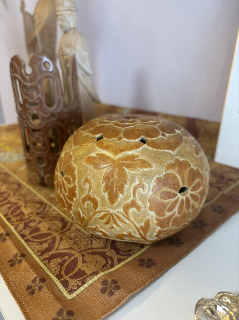 ↑ひょうたんで作られた手彫りの置物!細かくてとても素人が作ったとは思えない作品です><