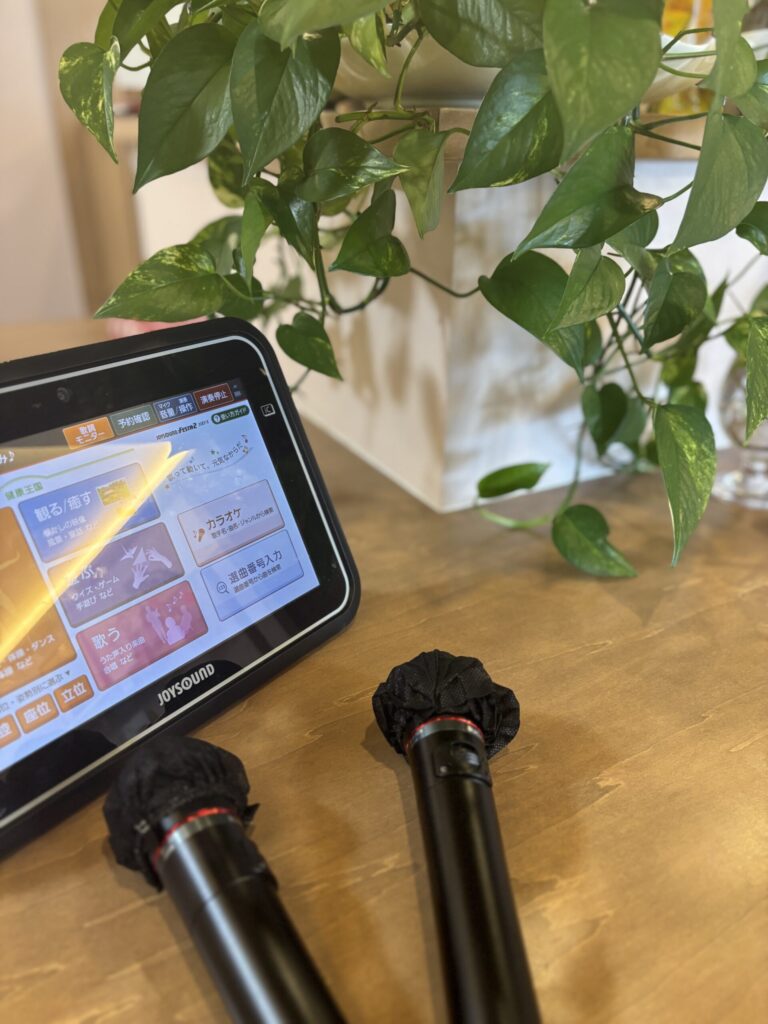 13時からは、歌とお酒で賑やかに! 午後からはカラオケタイム。お酒も飲めるので、施設のご利用者様やご家族、地域の方が一緒になって盛り上がる、当店ならではの光景が広がります。